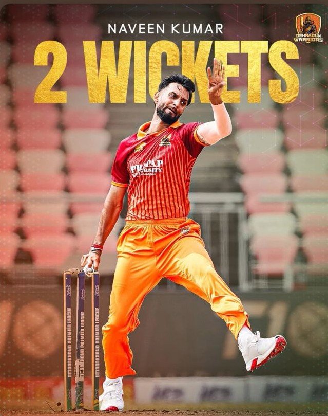 देहरादून : नवीन कुमार सिंह अपने पहले मैच में देहरादून वॉरियर्स (UPL)2025 की और से खेलते हुए 04 ओवर में 22 रन देकर 02 विकेट झटके नवीन कुमार का पिछले UPL 2024 में भी अच्छा प्रदर्शन किया गया था ,जिसके चलते इस बार देहरादून वारियर्स की टीम के द्वारा UPL में चयन किया गया है । नवीन नेट बॉलर के तौर पर IPL में राजस्थान रॉयल्स व लखनऊ सुपरजायंट्स की टीम में नेट बोलिंग कर चुके हैं।
